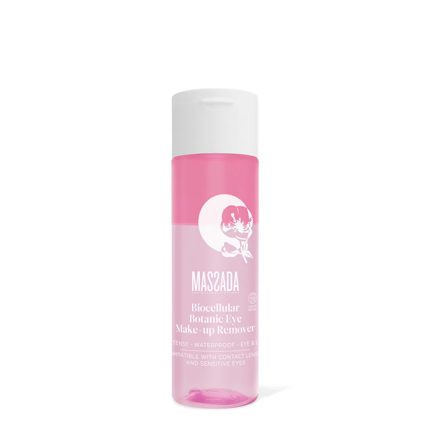 Agitar para mezclar las dos fases y aplicar suavemente sobre ojos y labios con un disco de algodón.